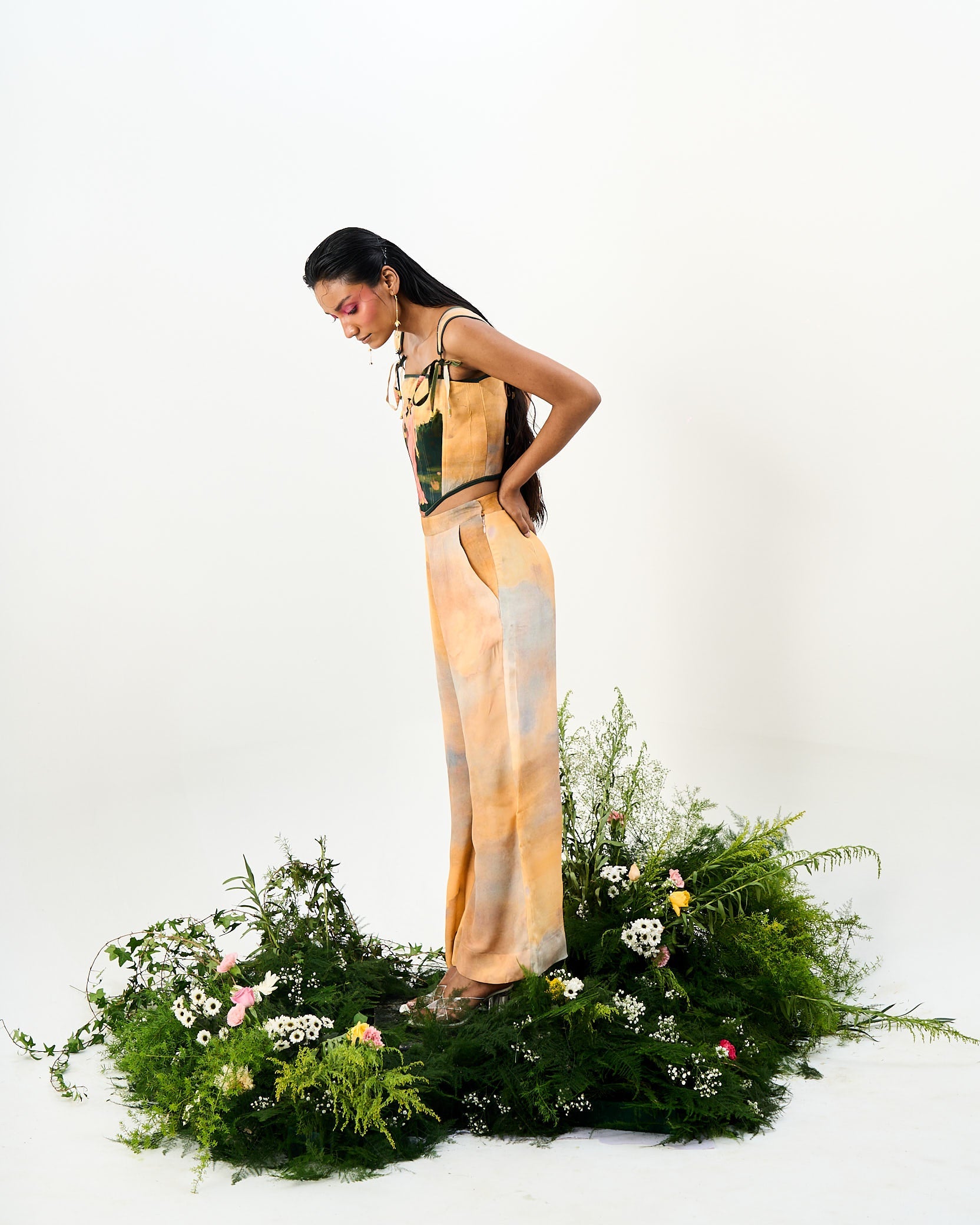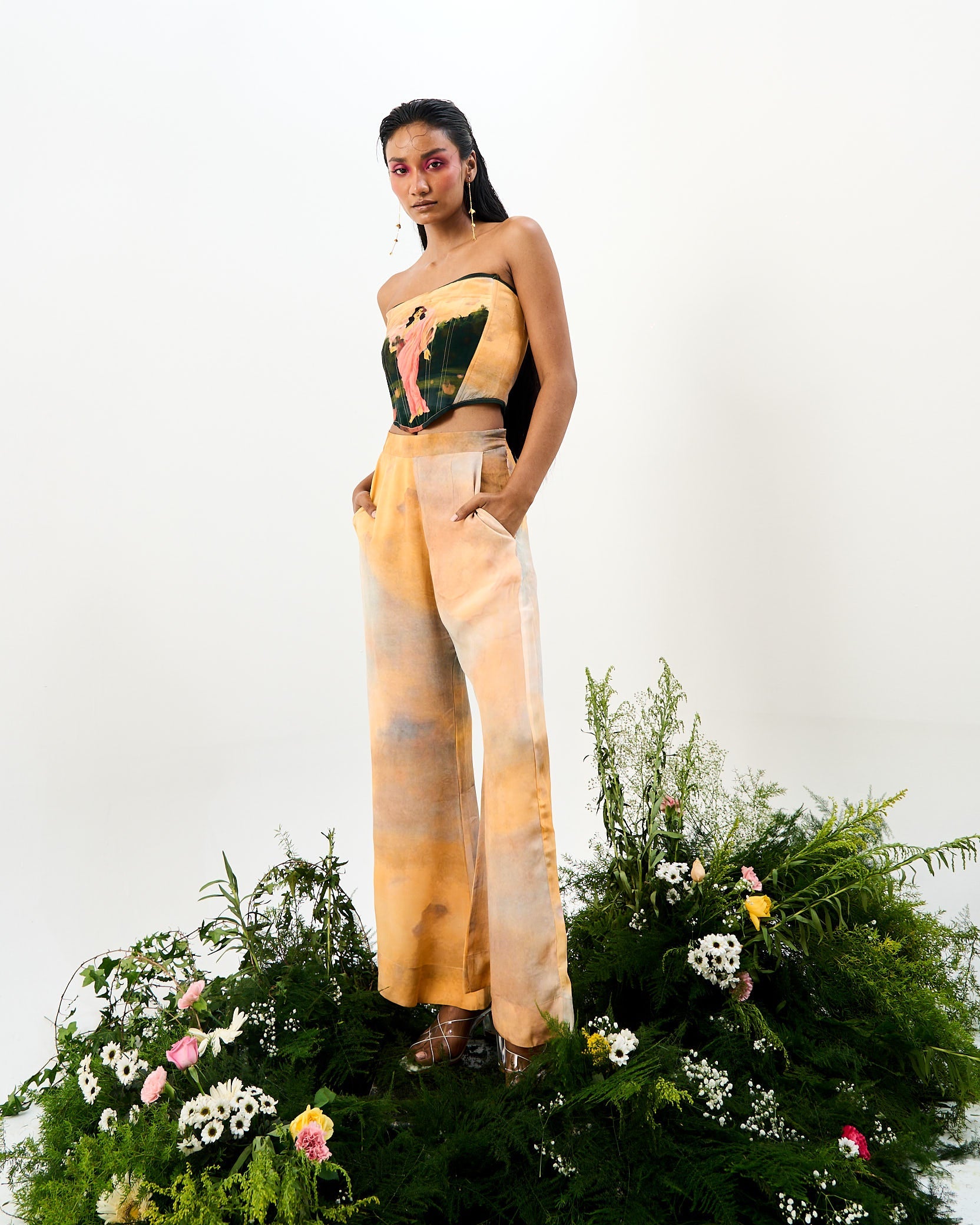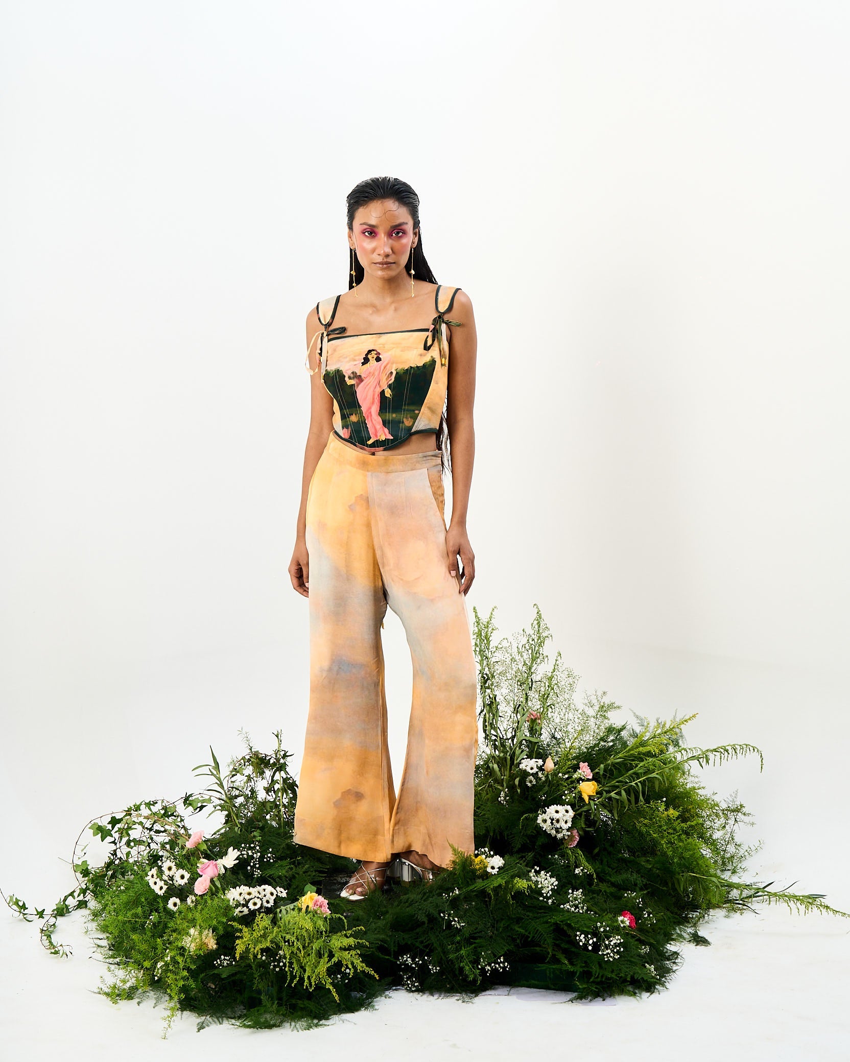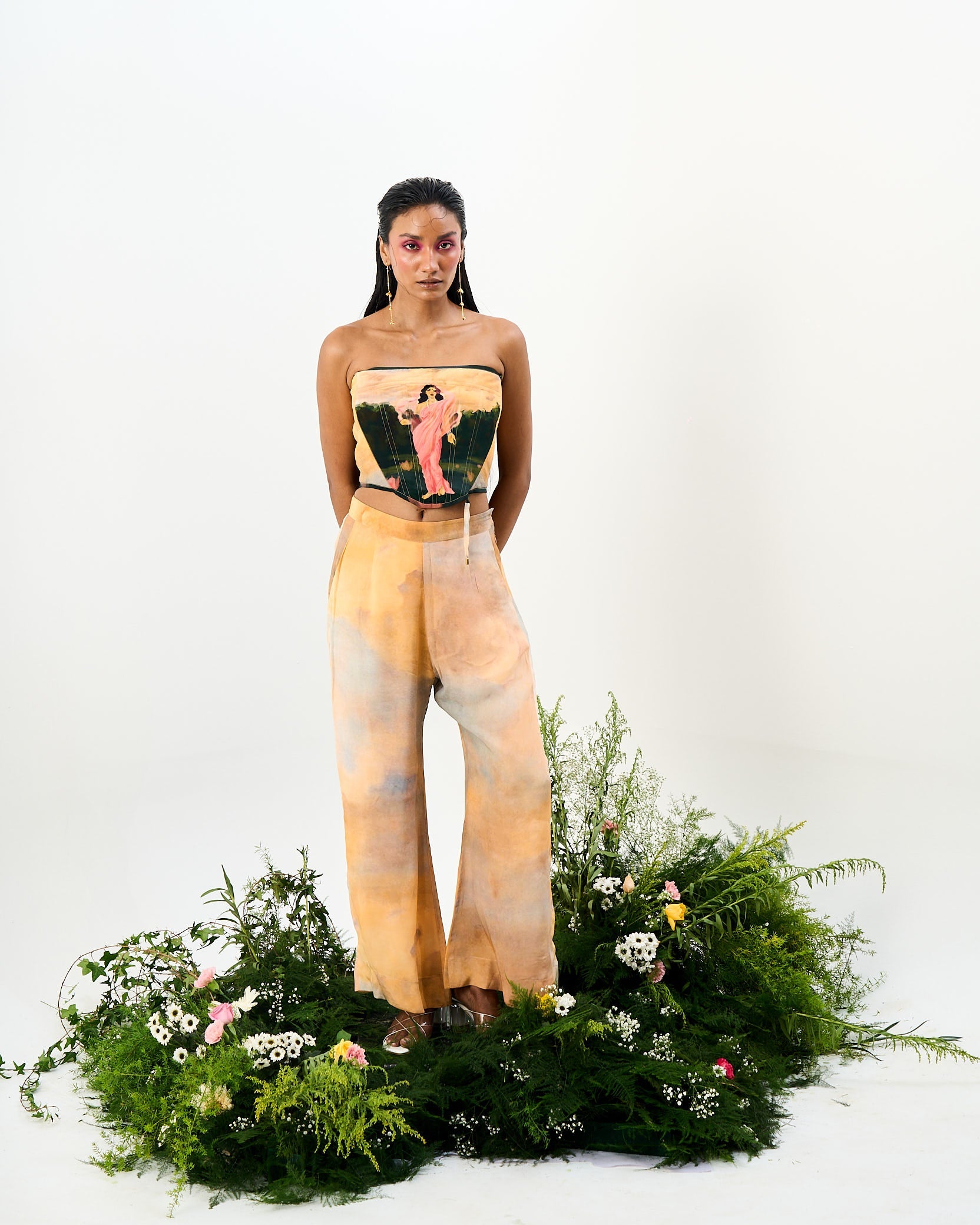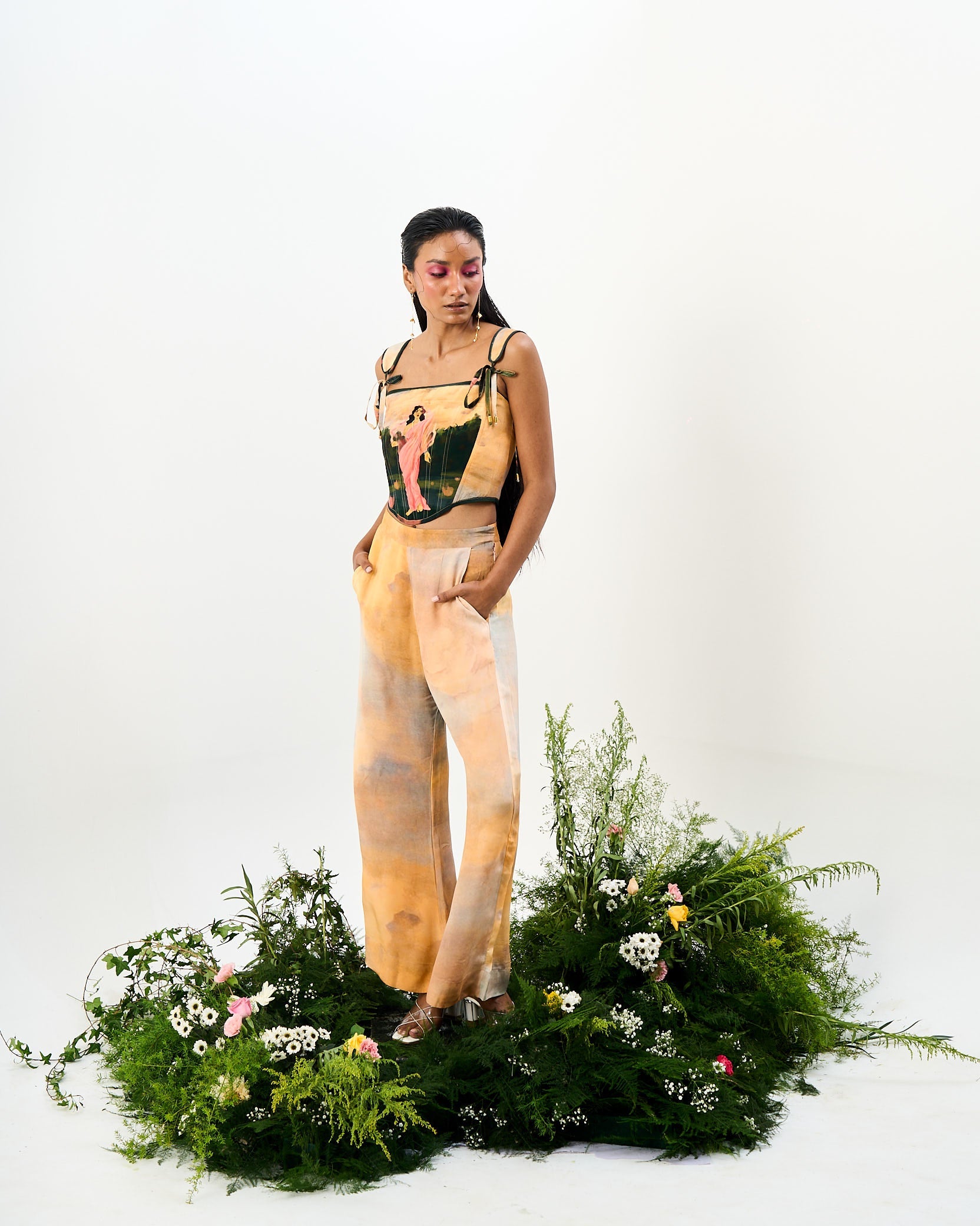 Our Khwabeeda corset is a work of art inspired by the famous painter Raja Ravi Verma. The intricate and detailed artwork on the corset will make you feel like you've stepped into a painting. The corset is perfect for a formal event, a wedding or a special occasion.