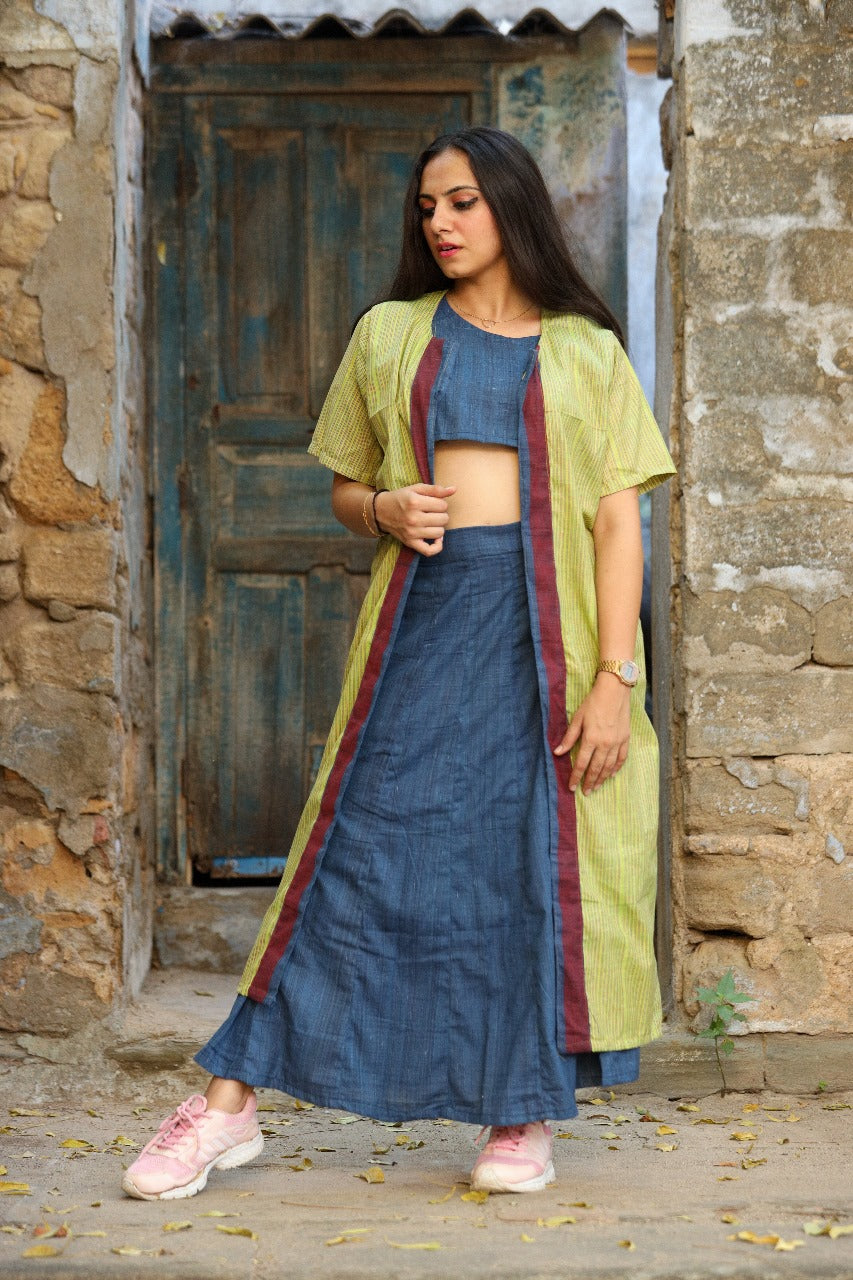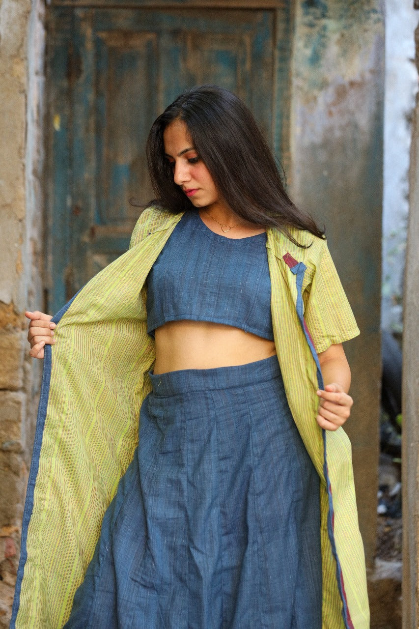 LAVI KHADI CROP TOP, JACKET AND SKIRT