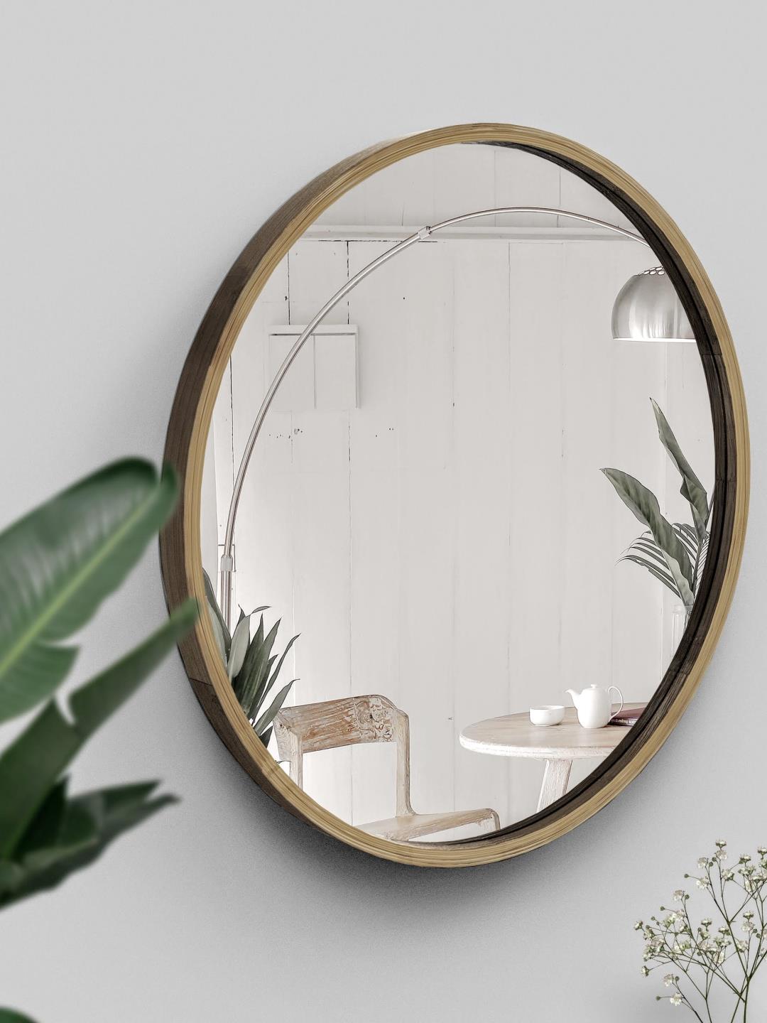 This exquisite round mirror with a supple bamboo finish is available in two sizes 60 cm diameter and 45 cm diameter.