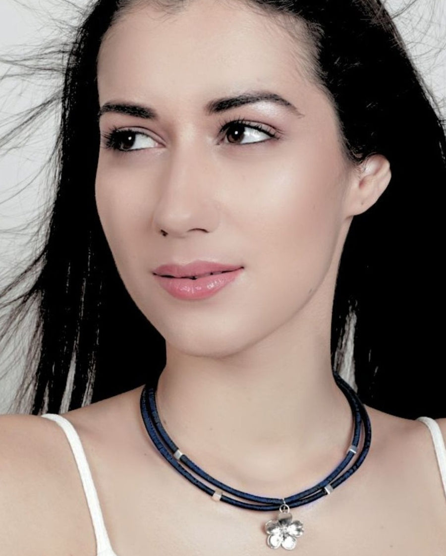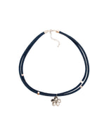 We have captured the beauty of the Moon Flower in our Navy Blue Cork Necklace layered with silver charms. The intricate design of the moonflower in silver and layered Navy Blue Cork has a dainty and gorgeous allure.