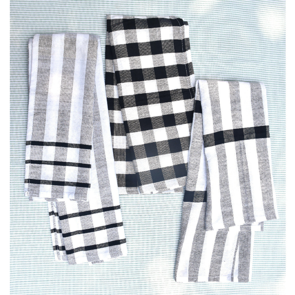 These bold, black & white tea towels are sure to be timeless add-ons to anyone's home linen stash! Versatile in use, these tea towels help keep your kitchen counter clean, and are great for picnics and outdoors as well.