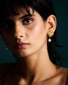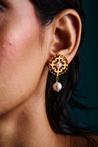 Embrace the charm of Nargis with these captivating earrings, adorned with delicate pearl detailing in 18 Karat Gold plating. Let the resplendent circular floral motifs whisper tales of vivacious allure, as they dangle from your ears, capturing the essence of Shambhala's mythical gardens.