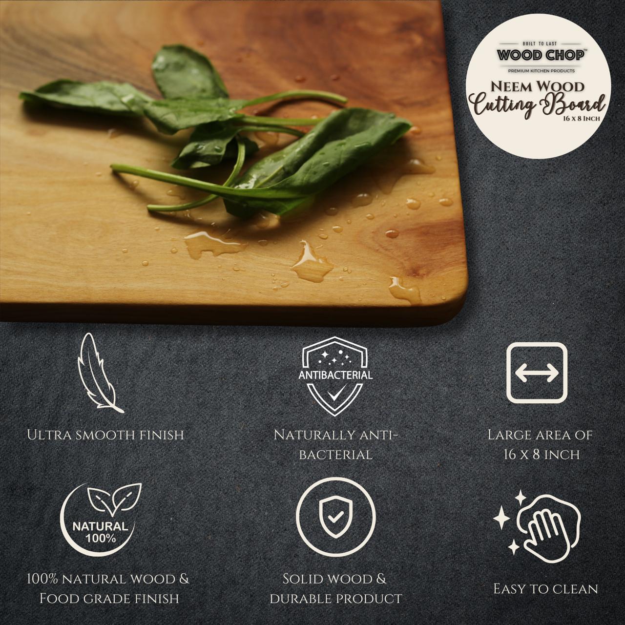 Neem Wood Chopping/Cutting Board - Anti-Bacterial 16 x 8 x 0.5 Inch (Not Single Piece of Wood)