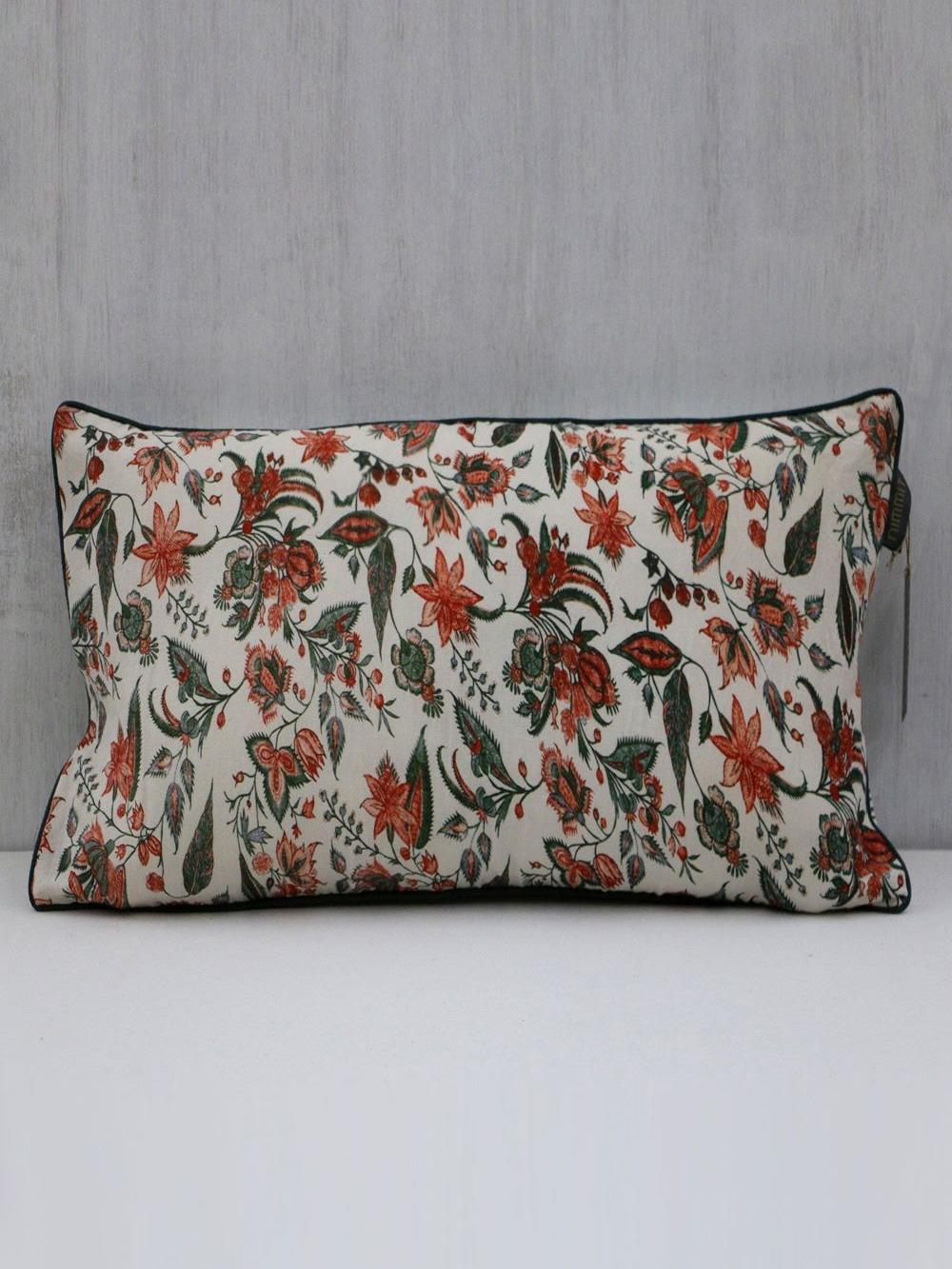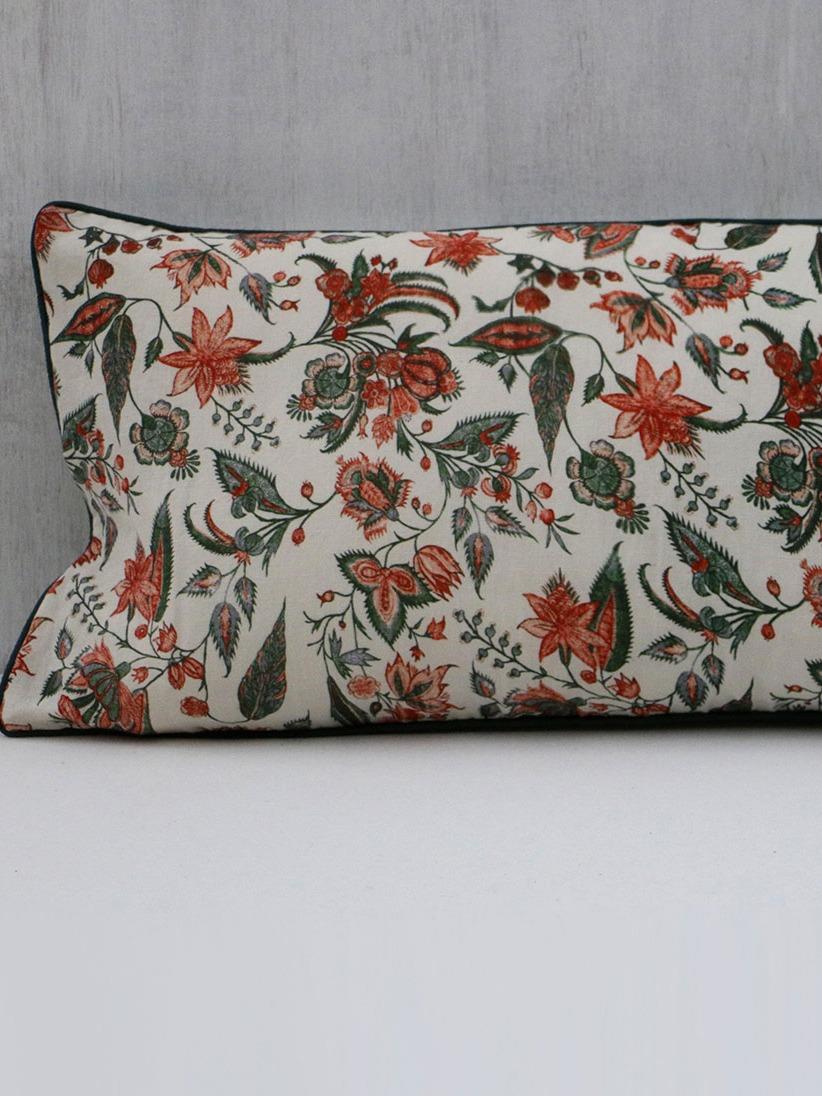 Nimmit Linen Cotton Hand Block Floral Print Long Cushion Cover