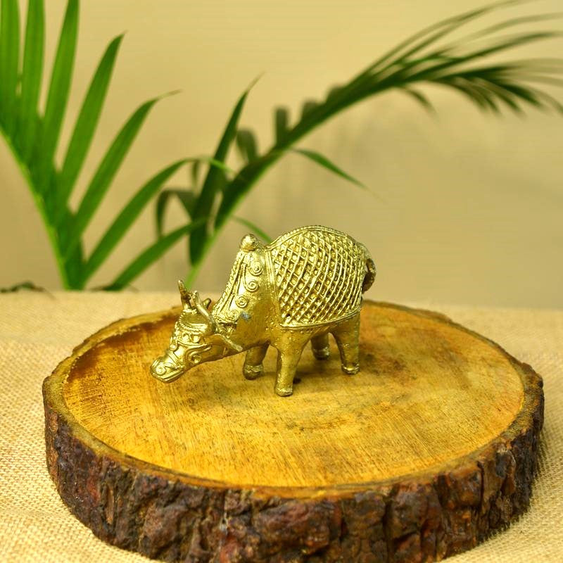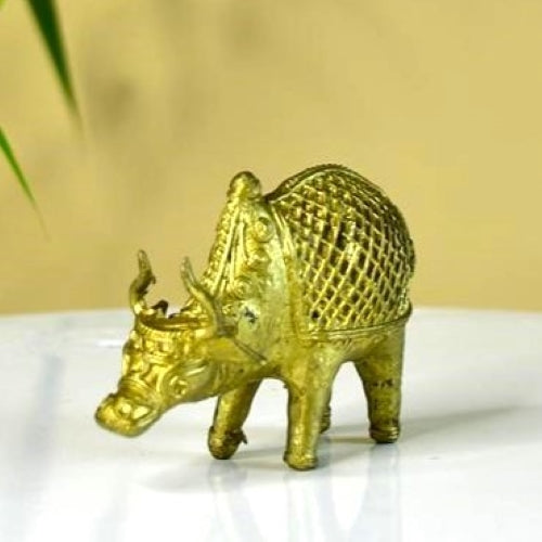 Introducing the Dokra Ox by Sowpeace, a true masterpiece for your home decor collection. Handcrafted with intricate Dhokra art, this brass Home Accessories, Living showpiece exudes cultural richness and artistic allure. Measuring 10.6cm x 4.1cm x 7.9cm (LxWxH), it's the perfect size to elevate any space. Designed to captivate, this showpiece is ideal for your living room or any area in need of a unique touch. Made with love and attention to detail, this handmade brass decor item showcases the beauty of traditional craftsmanship. Enhance your home with this stunning Dokra Ox and experience the charm of brass decor.