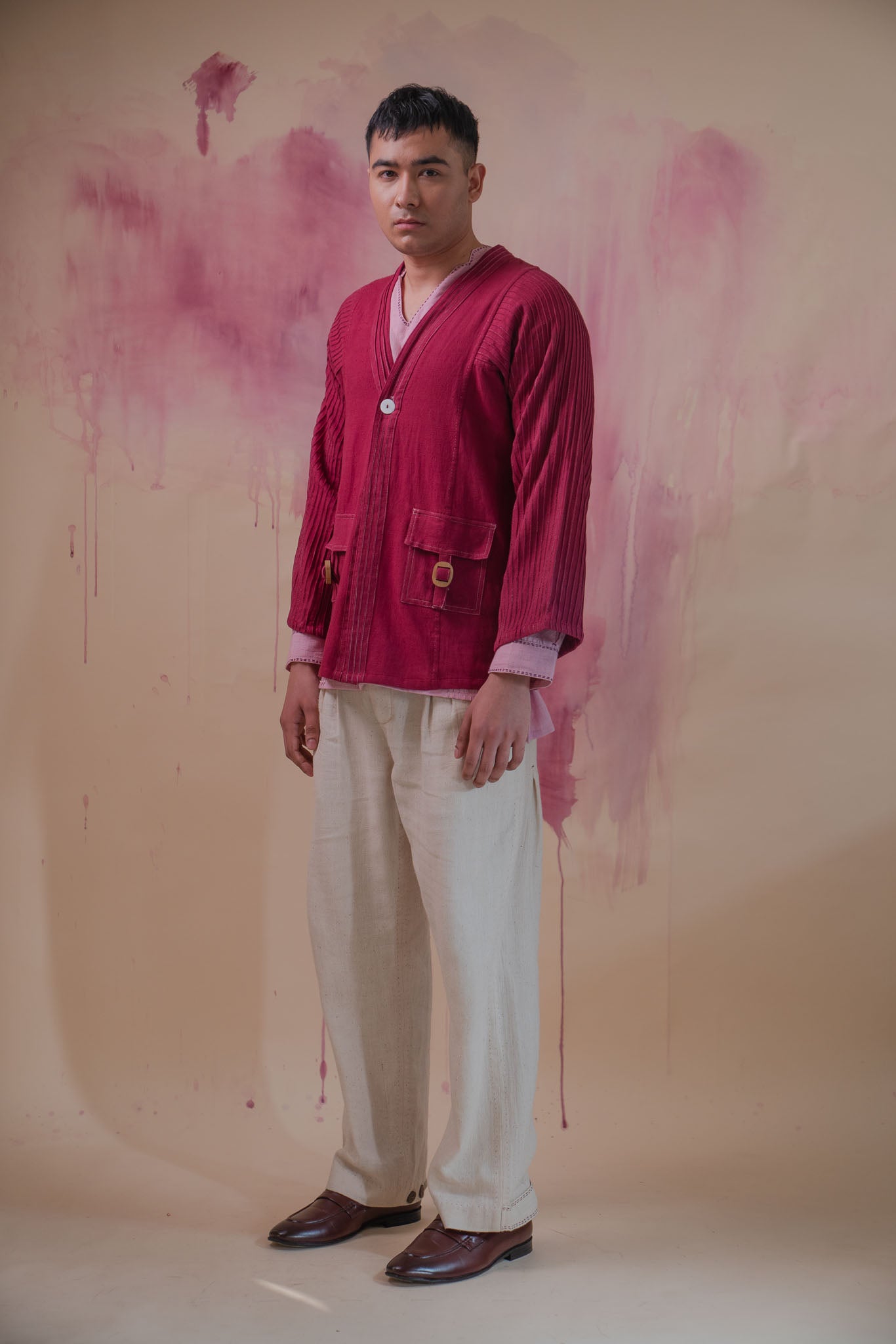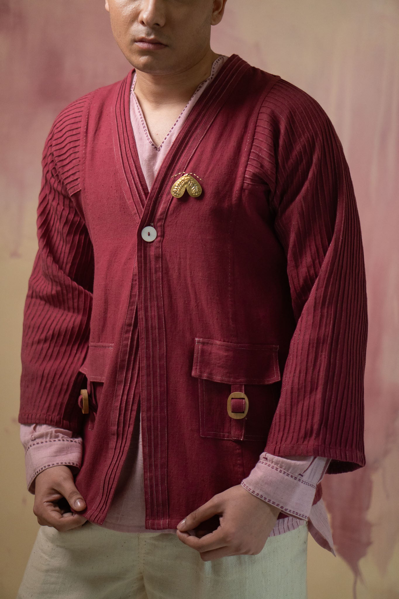 Crafted from 100% cotton fibers and natural materials. This Kala Cotton Haori comes in a calm and soothing colour that we call Fire Brick naturally dyed from a host of ingredients ranging from madder root to onion peel.