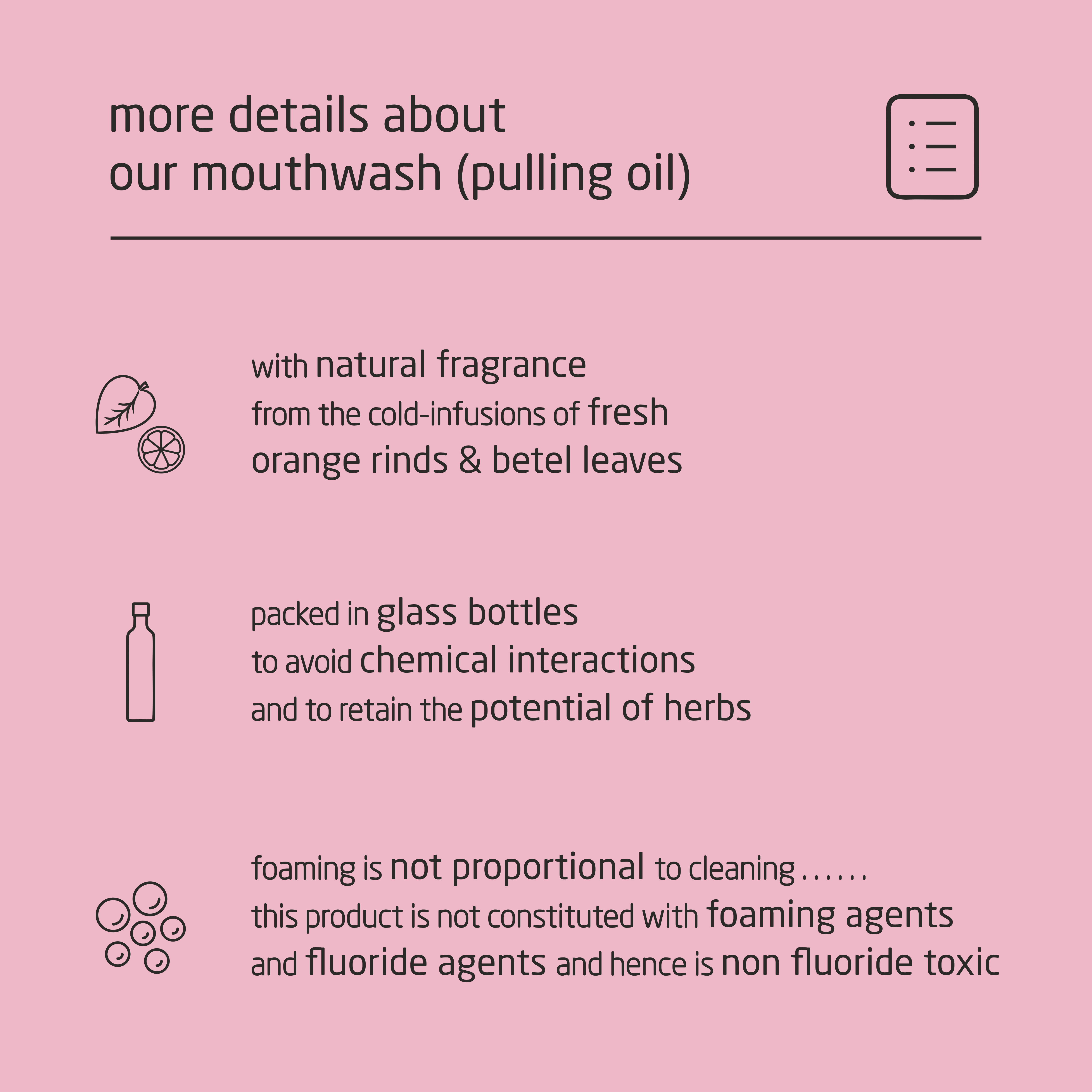 Refreshing Mouthwash with the power of 18 Indigenous Herbs cold-infused in wood-pressed coconut oil