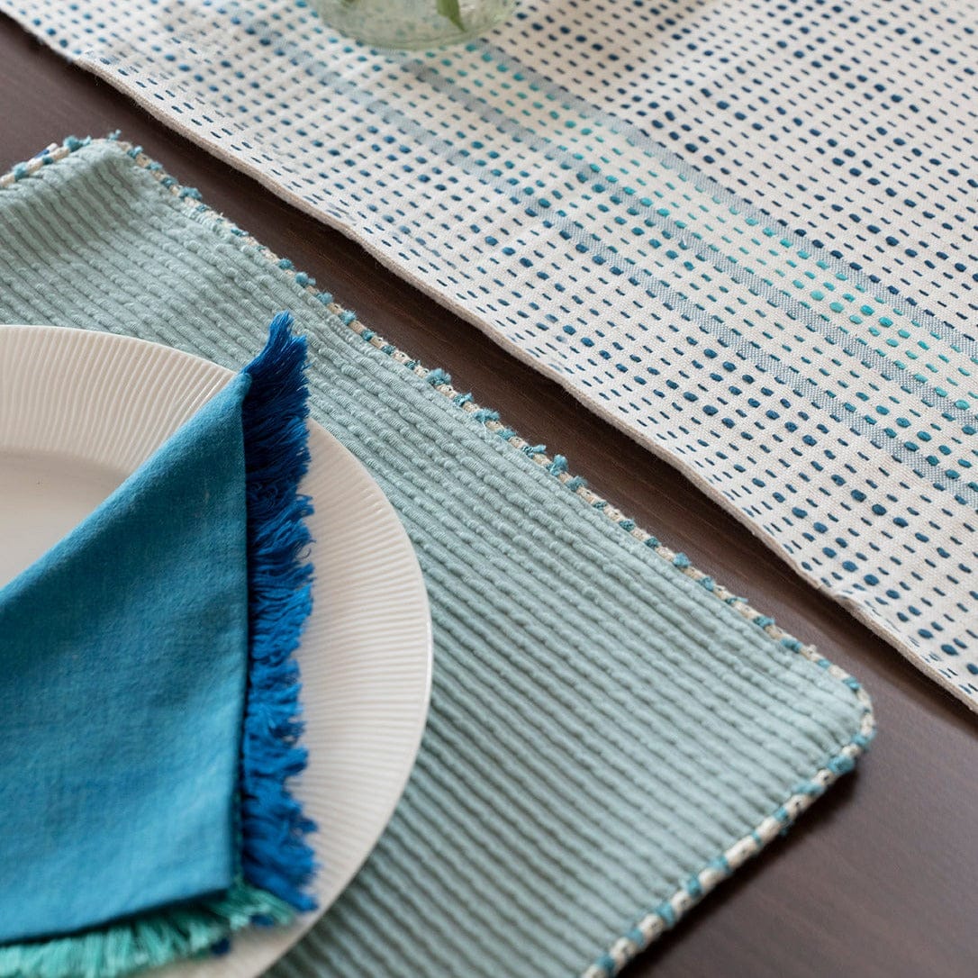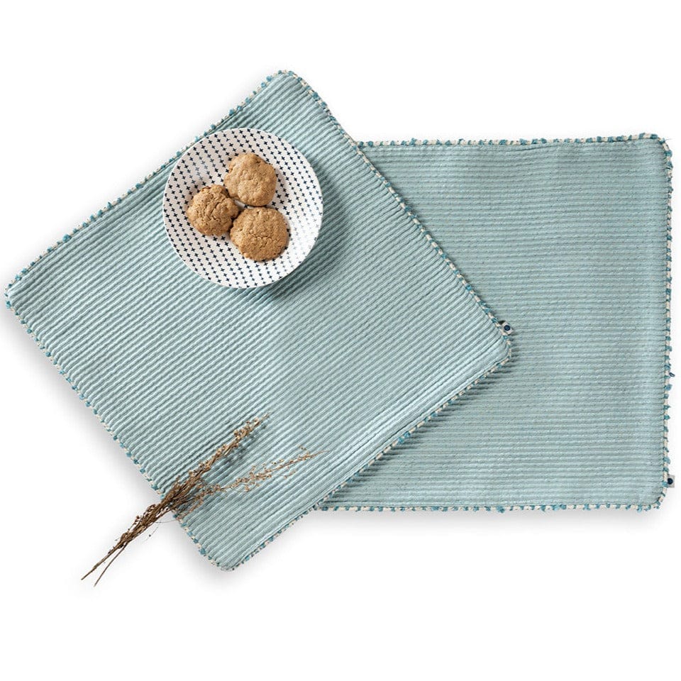 A ribbed weave crafted beautifully in organic cotton, this handwoven mat in slubbed weaves from blended yarns makes for a beautiful addition to your tabletop. The happy soothing sky color will surely add calmness to your set up.