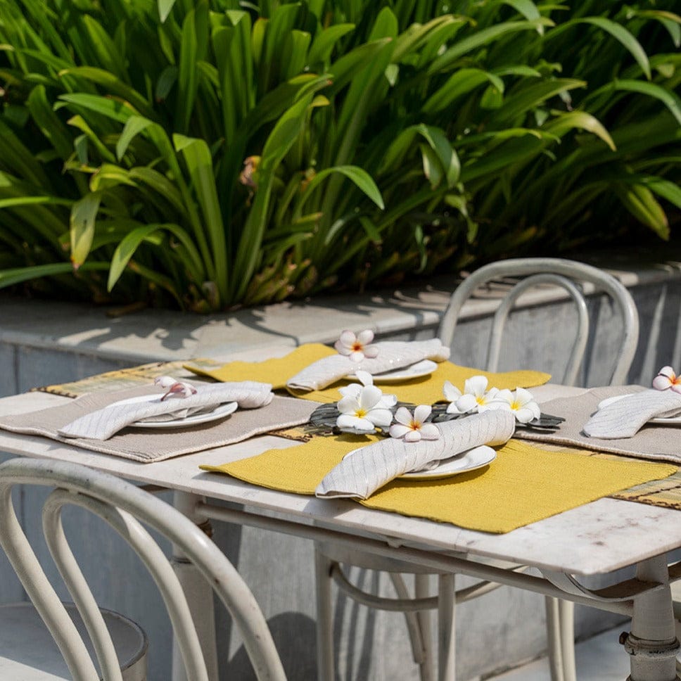 A ribbed weave crafted beautifully in organic cotton, this handwoven mat in slubbed weaves from blended yarns makes for a beautiful addition to your tabletop. The happy green colour will surely add joy to your set up.
