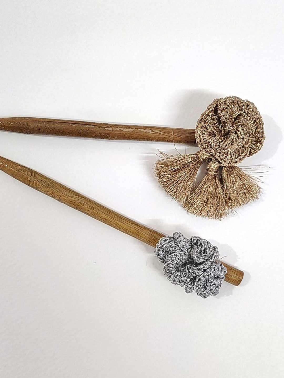 Set of golden and silver hair sticks