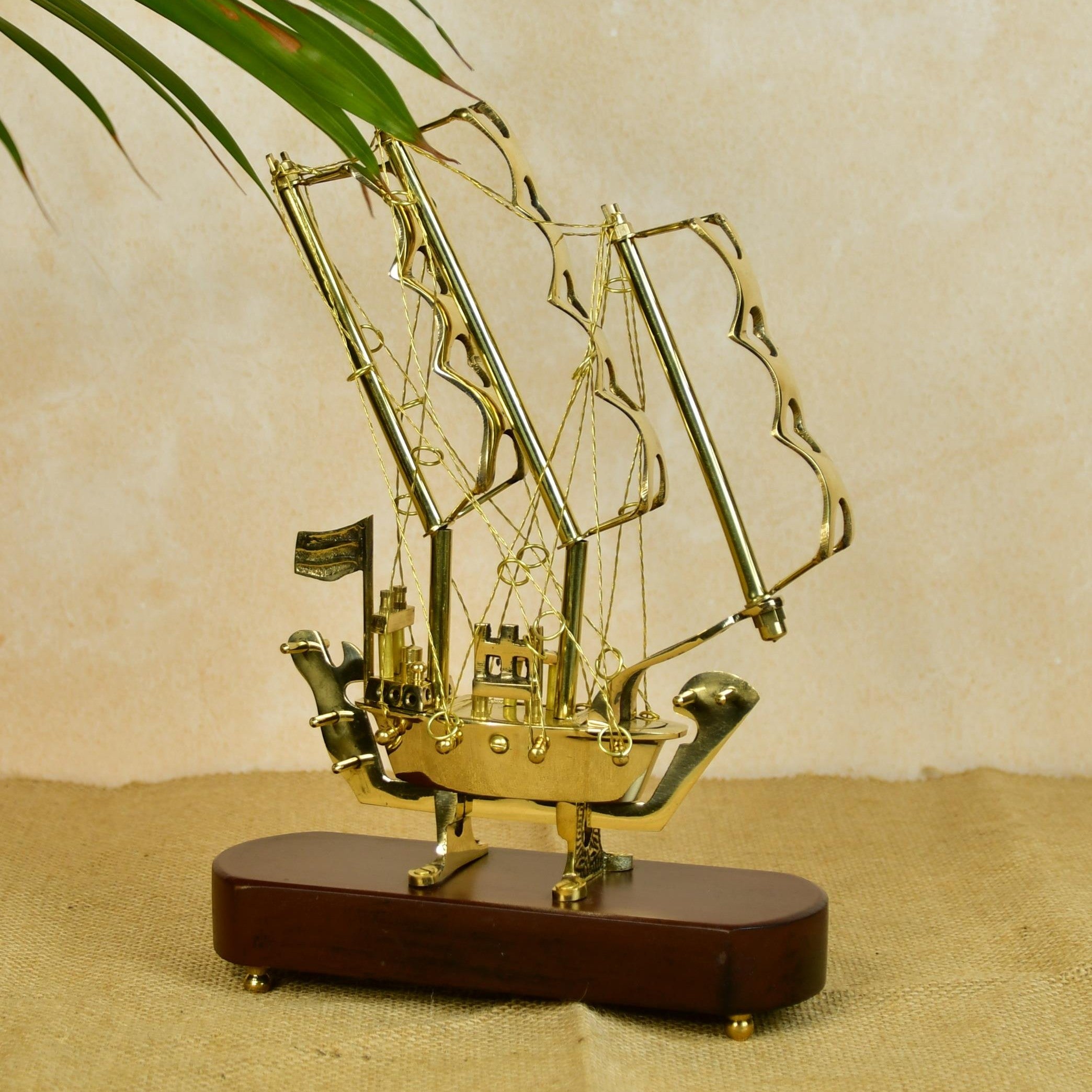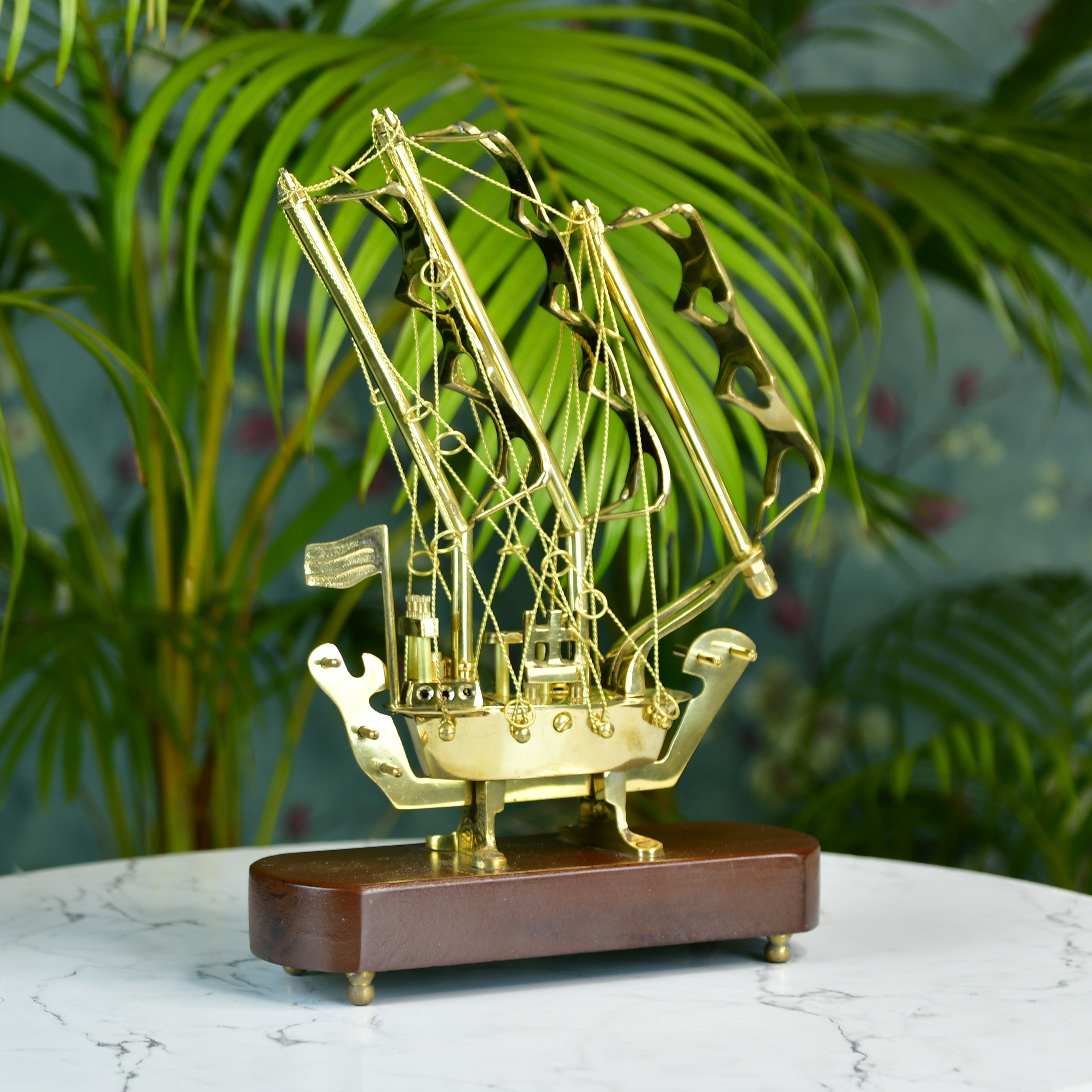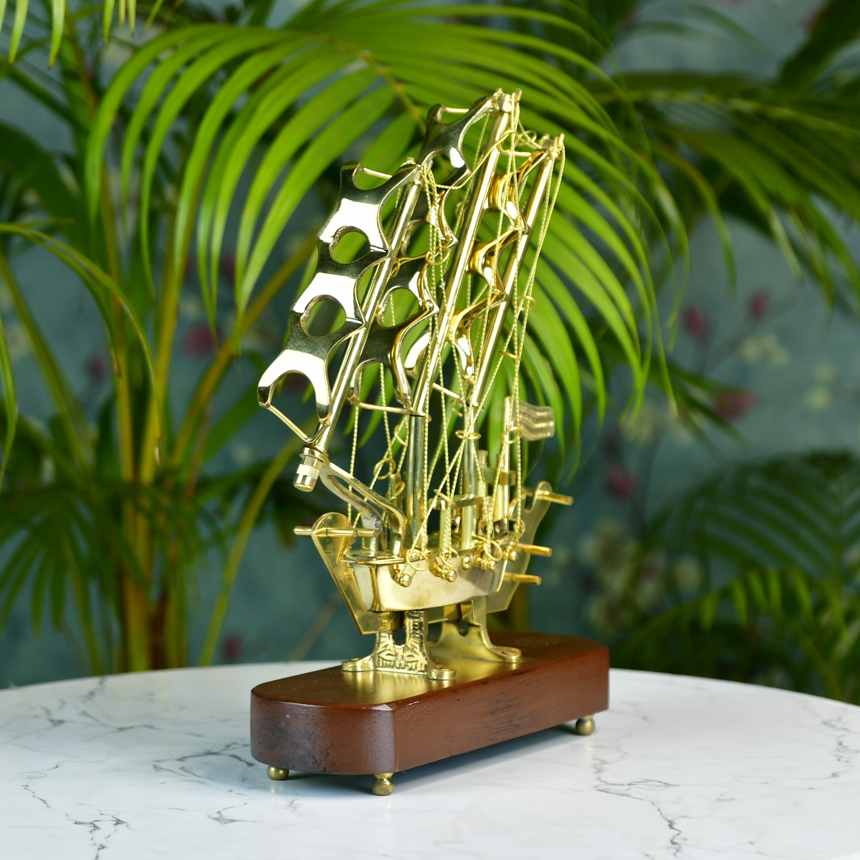 Elegant Design: Features a beautifully crafted brass ship with multiple sails, adding a touch of maritime sophistication to your decor.