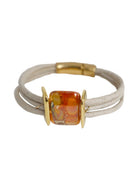 European Glossy Ceramic bead in hues of orange and yellow. The beads are handmade and each has its unique texture.