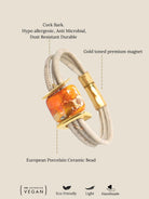 FOReT's Sun and Skies Bracelet is inspired by the skies painted in the colours of the sun while the flowers sway in its light. This limited edition bracelet is handcrafted in cork and designed in ceramic beads. .