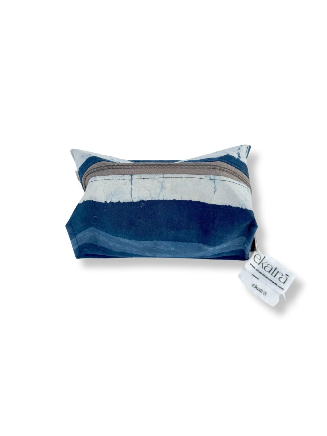 Enjoy your travels with grace and style using the Sustainable Cotton Travel Pouch/Organizer by Ekatra. The organic cotton fabric is luxuriously lightweight yet sturdy, perfect for keeping your belongings safe and secure during long journeys. Its distinct Indigo Stripes design is sure to make an impression wherever it goes.