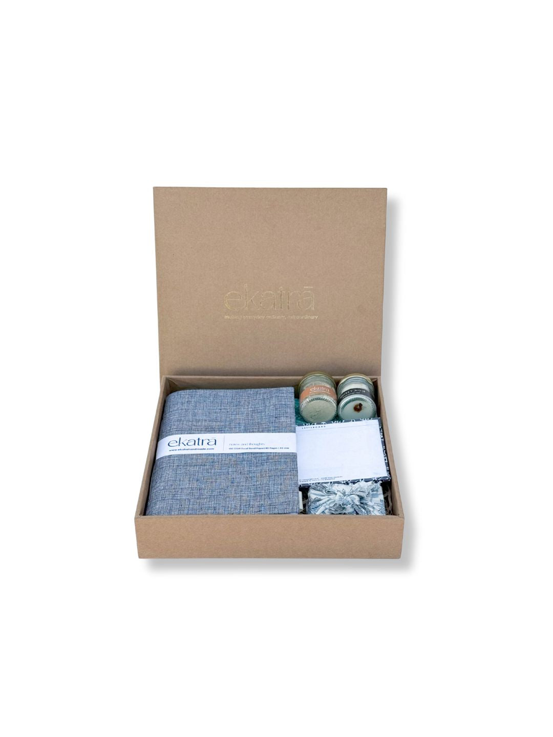 Discover a harmonious blend of wellness, sustainability, and craftsmanship with the Sustainable Wellness Hamper by Ekatra. Curated to inspire mindful living, this hamper includes: