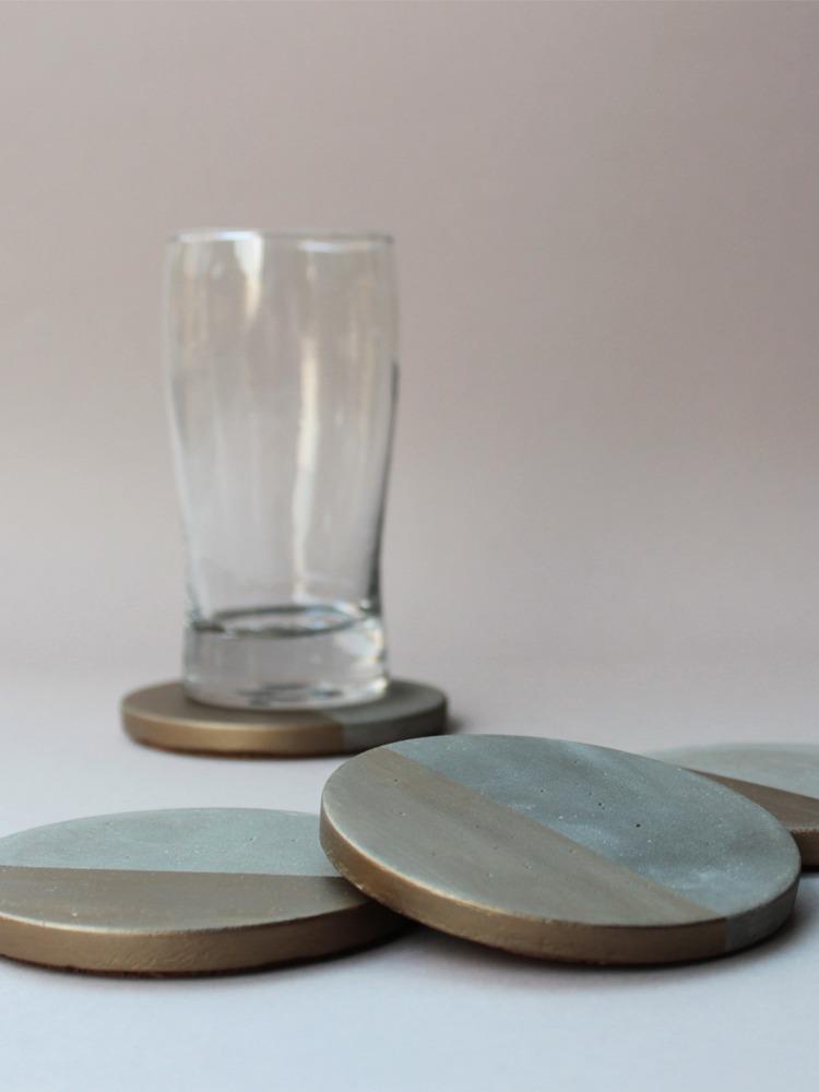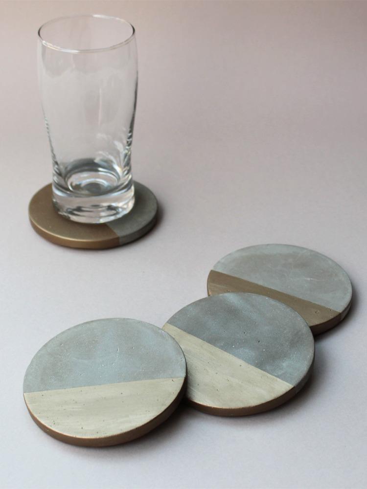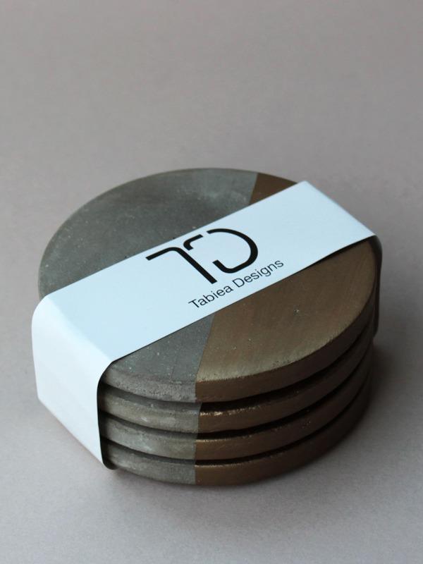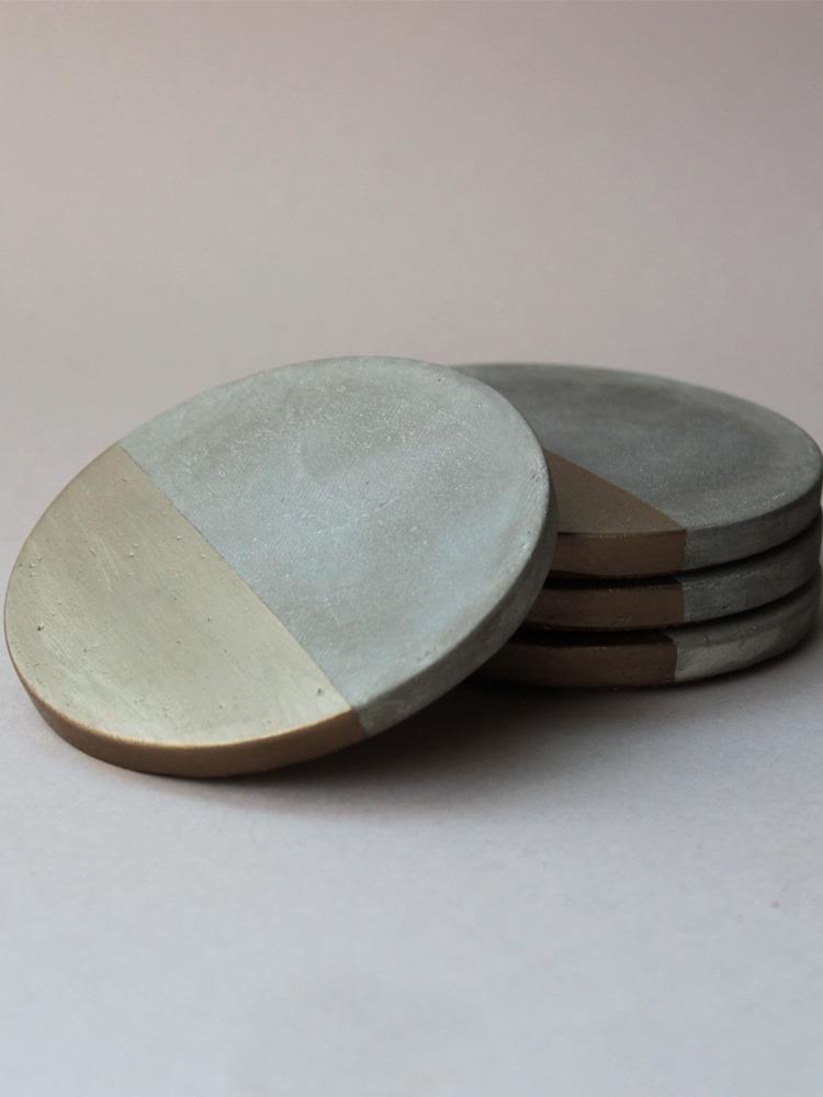 Tabiea Designs Circular Cement Coasters-Natural and Bronze-Set of 4