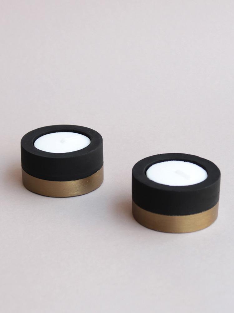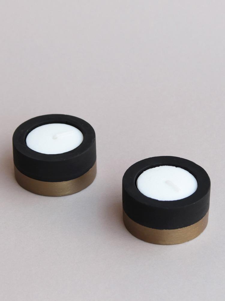 Tabiea Designs Circular Concrete Tealight Holders, Black and Bronze, Set of 2