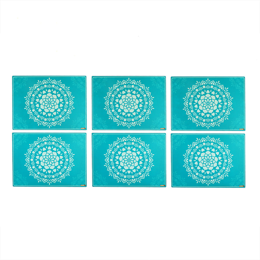 Our teal blue table mat or placemat boasts a beautifully intricate mandala design in a calming blue color. Its elegant and user-friendly design makes it easy to use and maintain, while the laminated surface offers protection against spills and stains. A practical and stylish addition to any dining table, this mandala table mat is sure to impress with its sophisticated and eye-catching appearance.