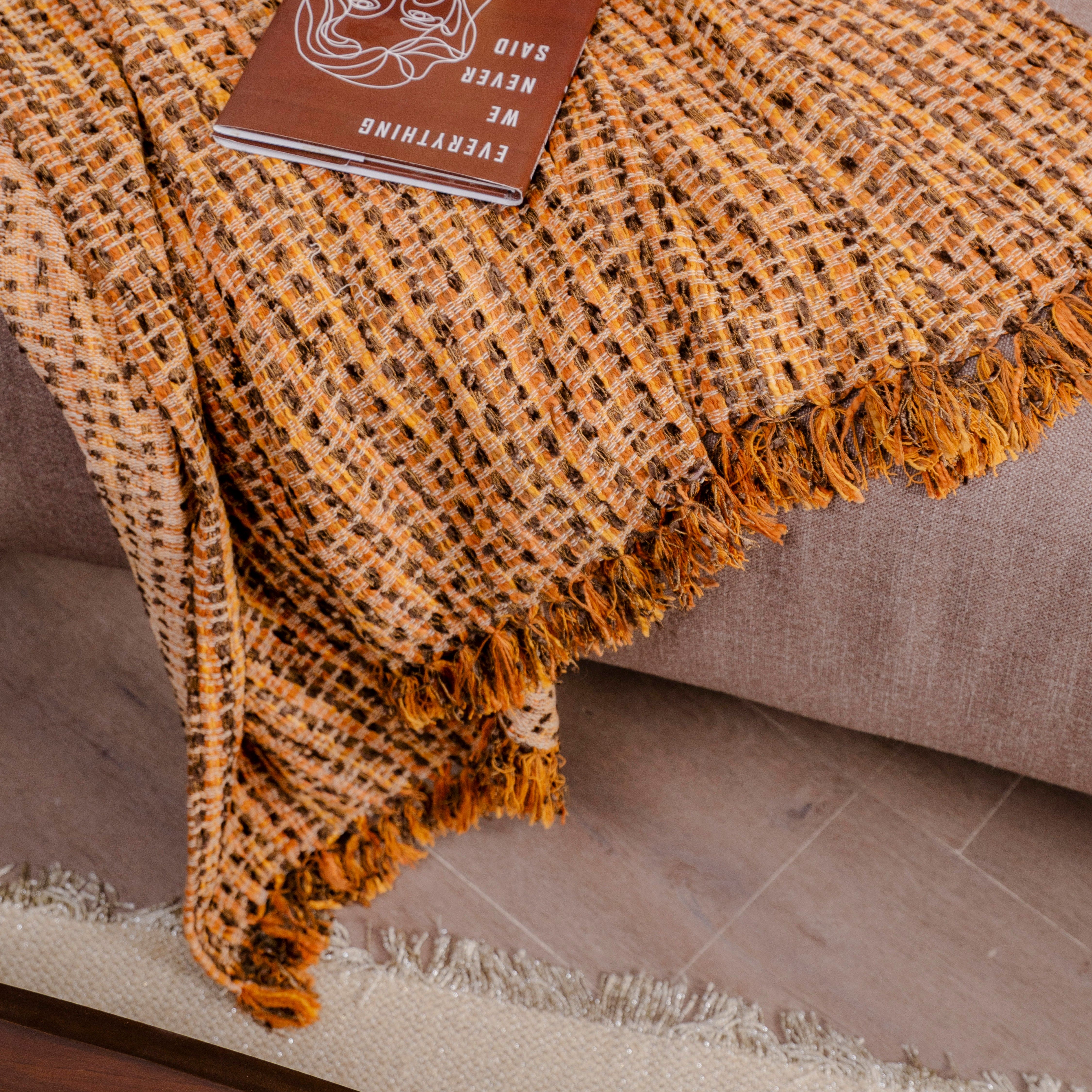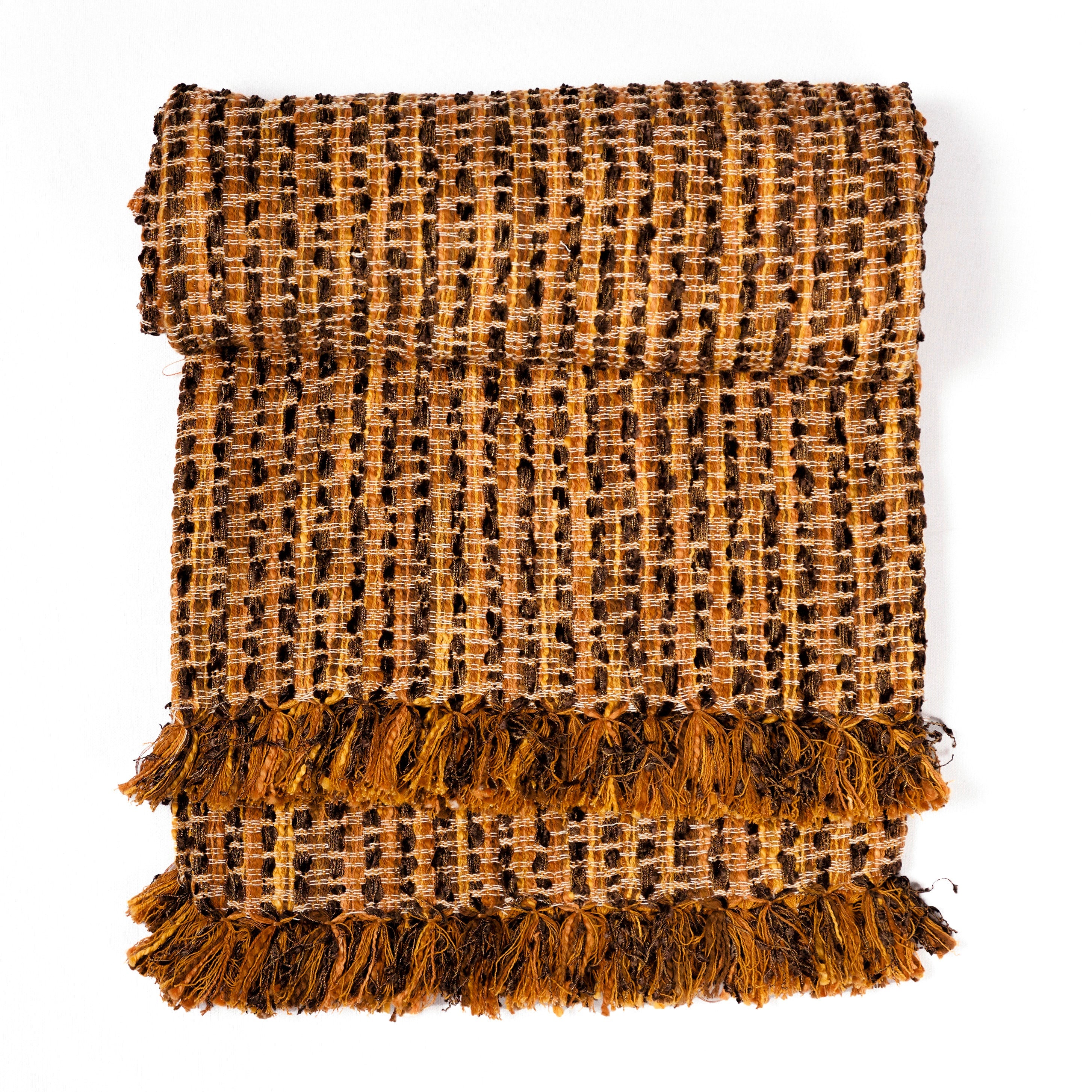 This handwoven tweed throw combines different bouclé yarns to create a striking stripe pattern, blending rich textures with bold design. Finished with beautiful self-fringes, it adds a refined yet cozy touch to your space. Perfect for layering on a bed or draping over a sofa, this throw brings effortless style and warmth to any room.