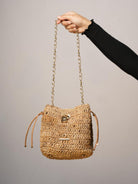 Just like her name suggests, she's Iconic and will make you fall in love at first sight. She's a star, and she comes with a bracelet that can be donned as an extension to the bag or as a bracelet on its own. She’s super cute, and roomy, and adds a little charm to your outfits. Although small, the mini bucket bag is roomy and you can adjust the space by adjusting the cork threads on the sides.