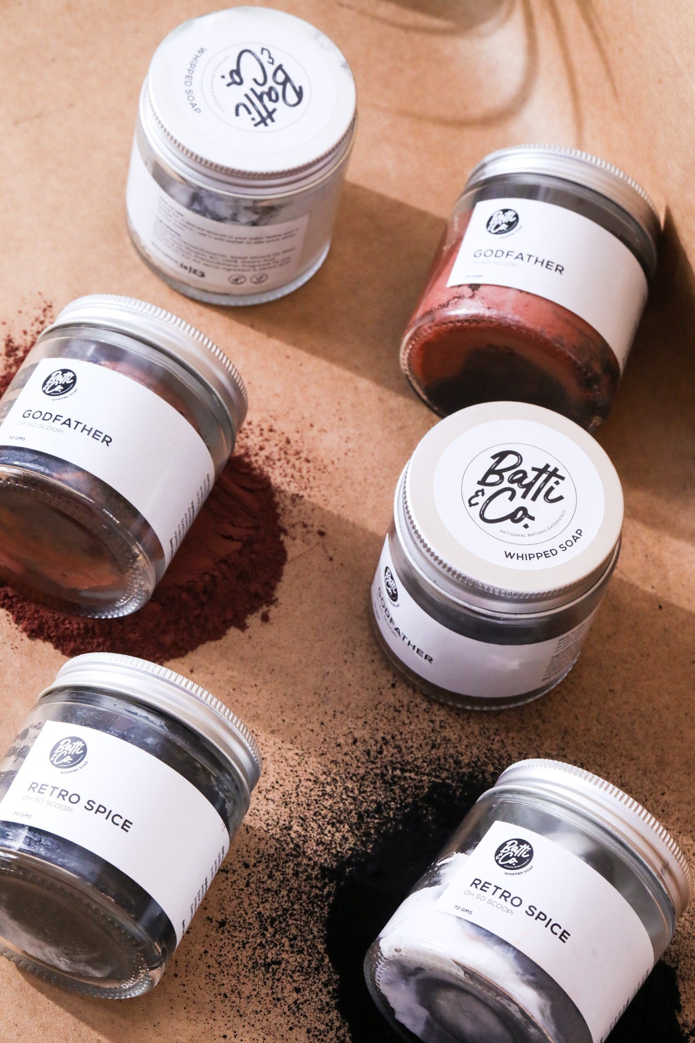 Retro Spice : Activated Charcoal, Sweet Almond Oil, Shea Butter, Aqua, Glycerin, SCI, CAPB, Stearic Acid, Propylene Glycol, PhenoxyEthanol, Fragrance Oil and Essential Oil.