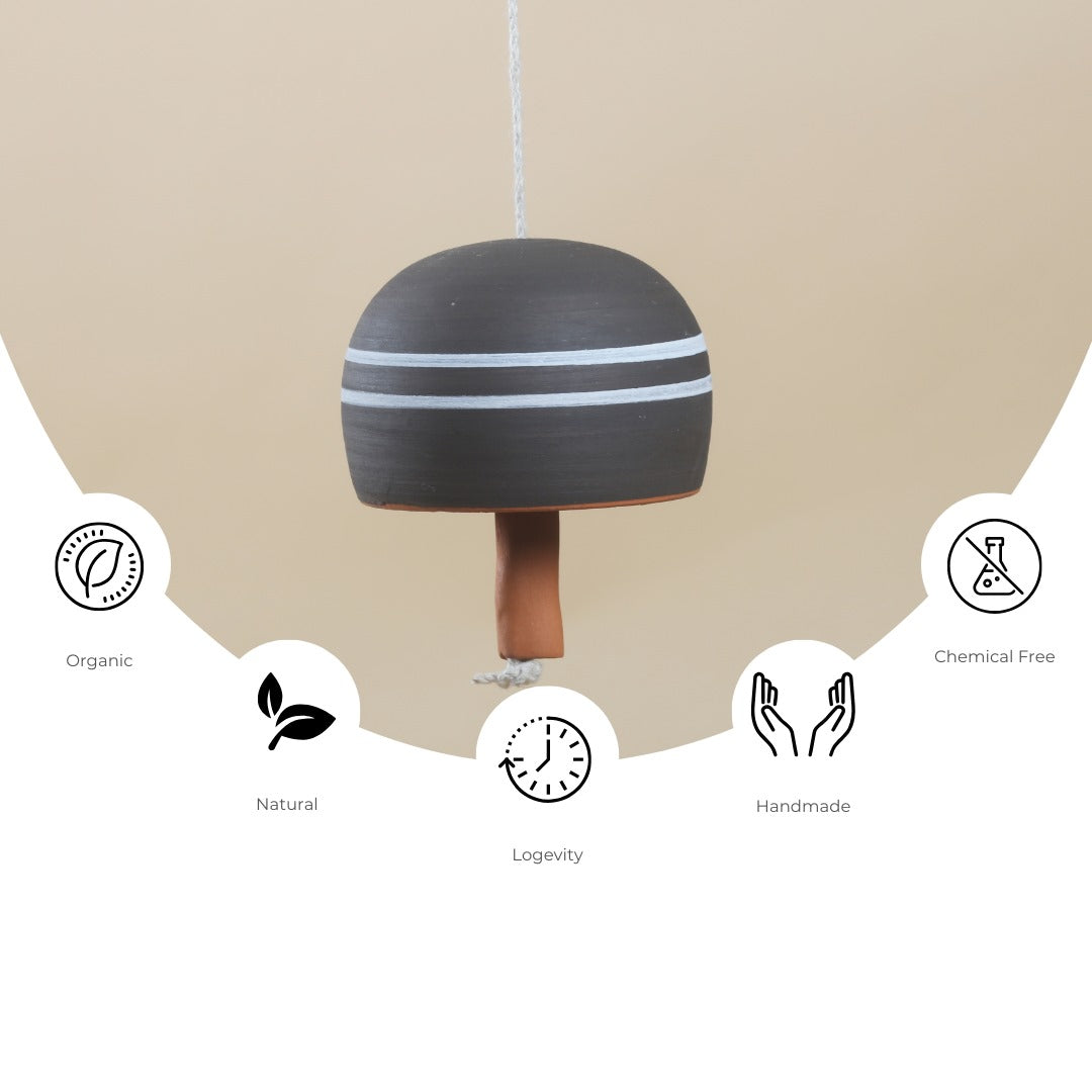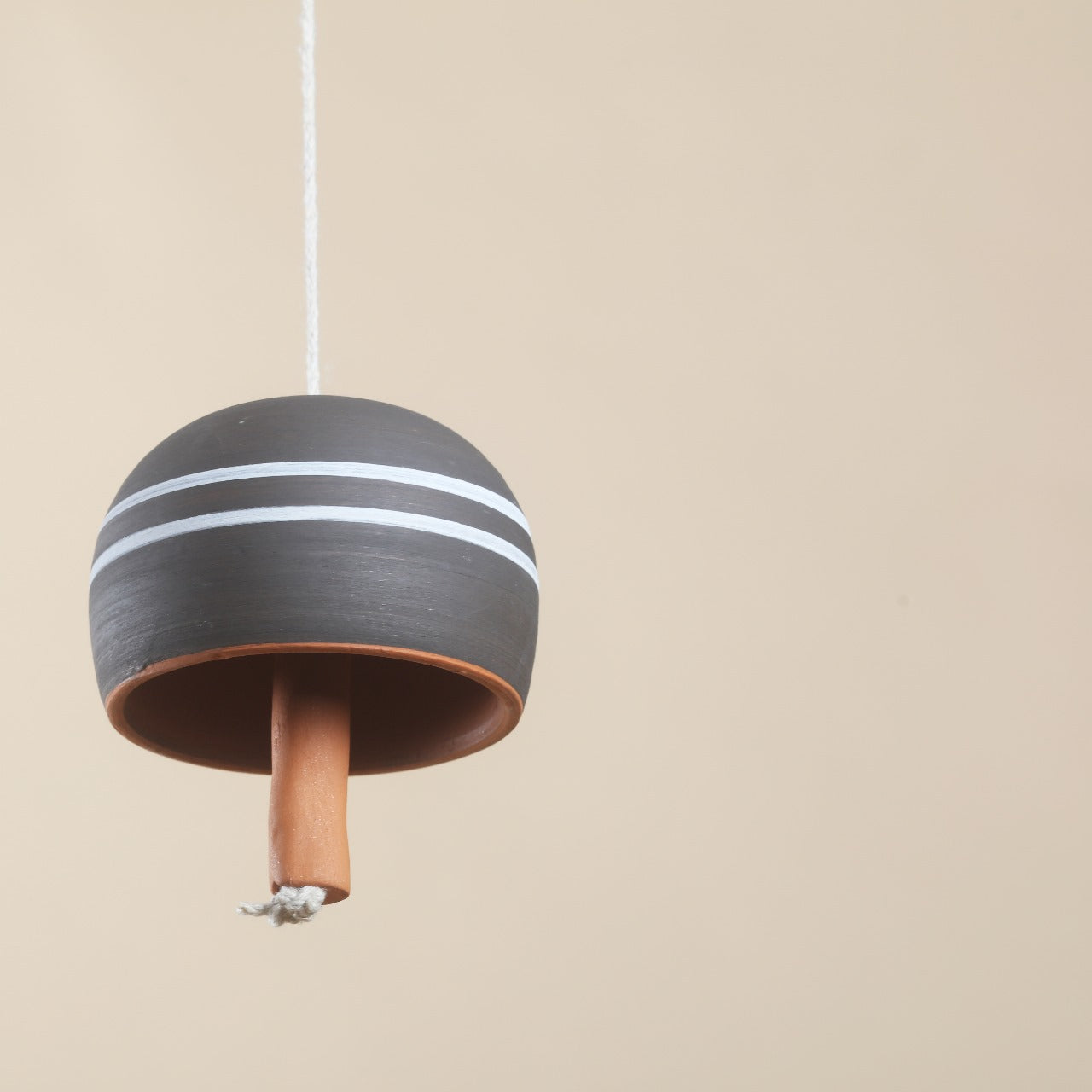 Vanchai Coal Terracotta Bell with clay clapper, Handmade White Clay Bell