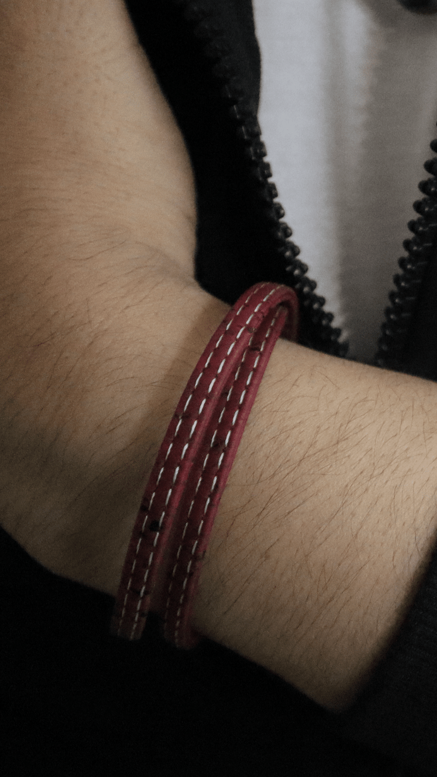 Vegan Cork Mens Wrap Bracelet- Wine Red with White embroidery